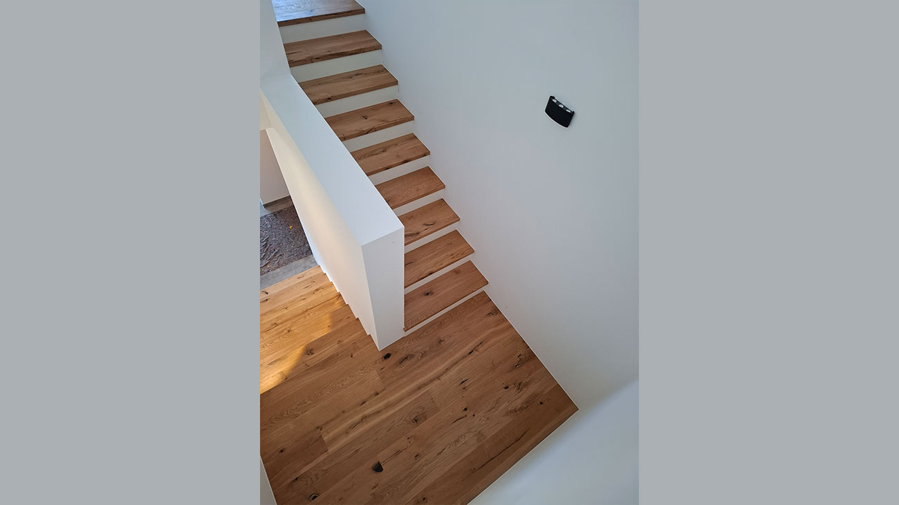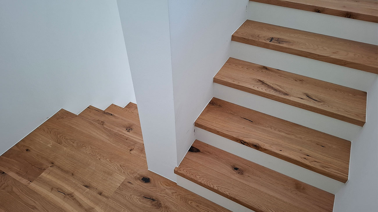 Wenn Sie eine Holzstiege bevorzugen, können wir Ihnen Treppen der Firmen Weitzer Parkett, Mafi Naturholzböden und Haro empfehlen. Wir helfen Ihnen bei der Auswahl und übernehmen die Lieferung und Montage. Unsere Spezialisten verkleiden Ihre Stufen mit dem gewünschten Fertigparkett, sodass Ihre Treppe einen natürlichen Holz-Look erhält.